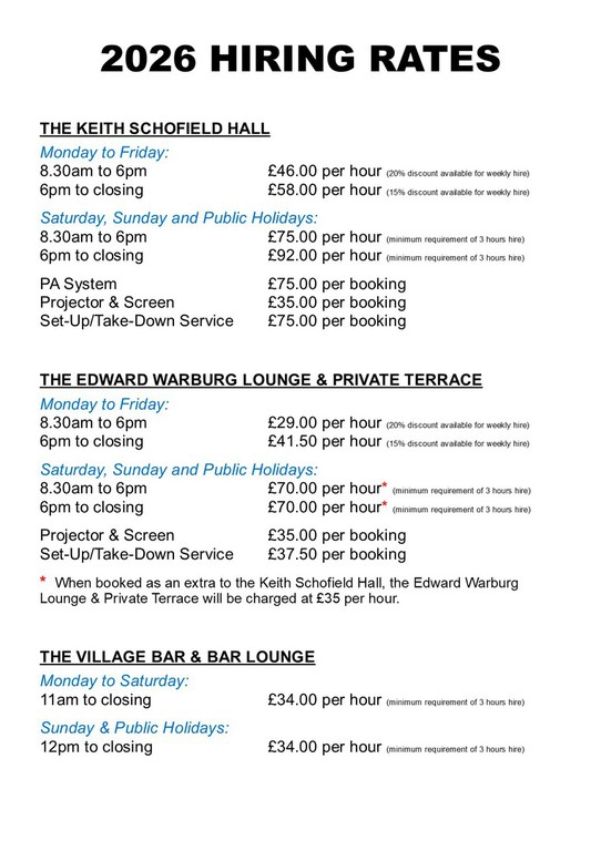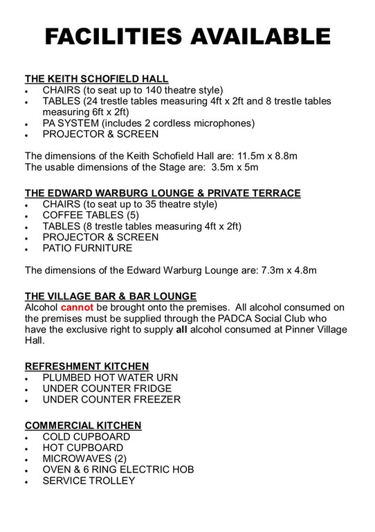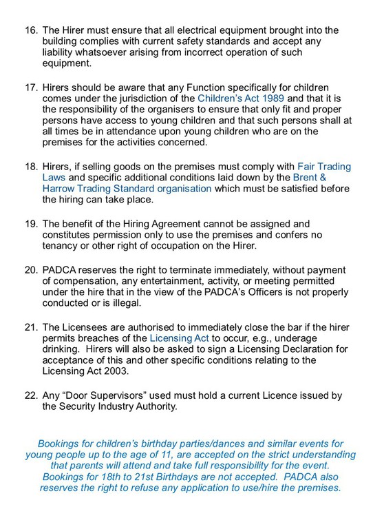 Additionally, we do not hire out premises for 12th to 18th Birthday Parties.