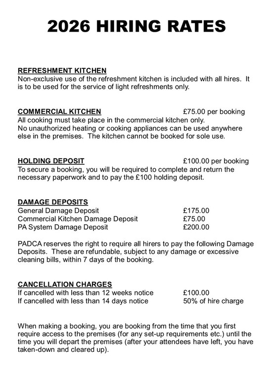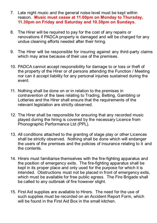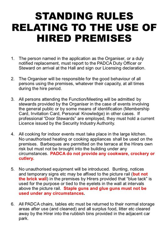 - You must ensure your set-up and cleaning takes place within the hired time.